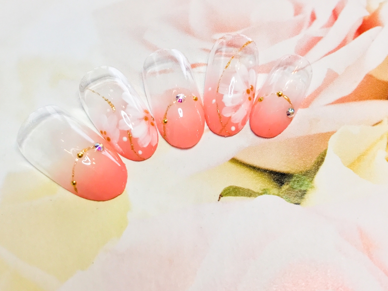 グラデーションに、上品なお花をあしらったネイル。