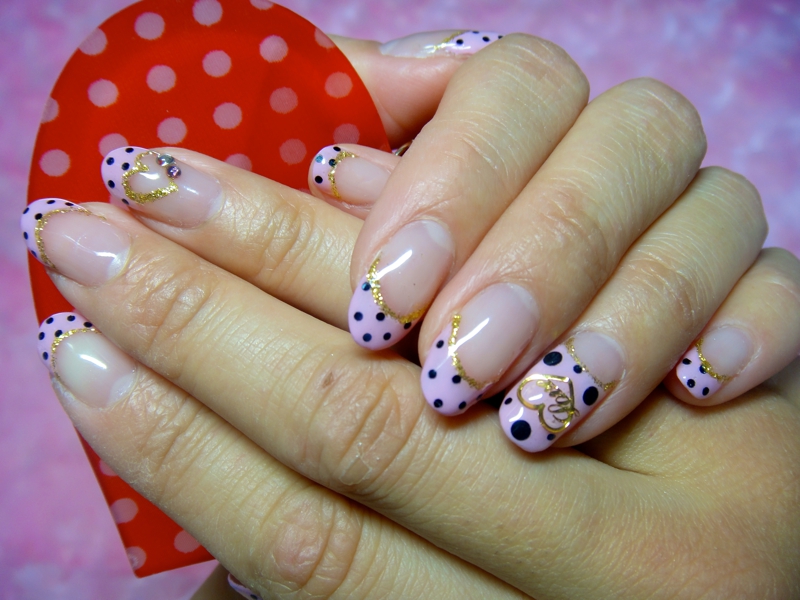 ベビーピンクに黒のドットがかわいい!薬指にはLOVEハート!!