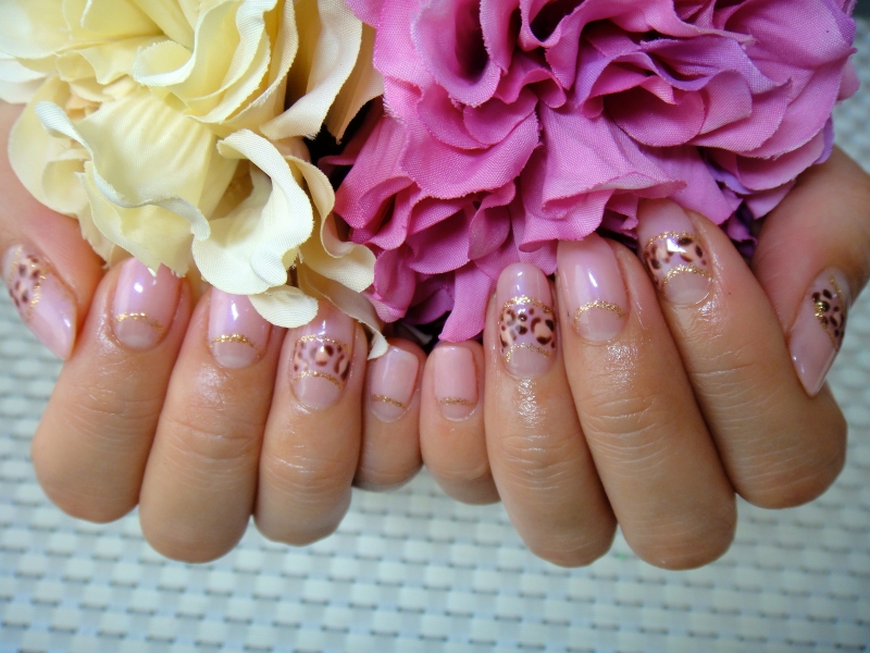 色の変更可能です。10本の逆フレンチに、ヒョウ柄アートが5本つきます。